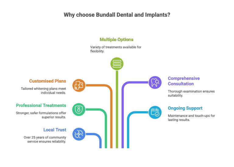 At Bundall Dental, we understand that every smile is unique, which is why we offer both in-chair and take-home whitening options tailored to your lifestyle, timeline and desired results. Our experienced team will assess your teeth and recommend the most suitable approach for achieving your brightest, most confident smile.